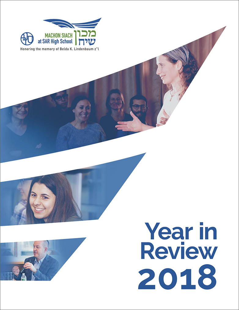 Machon Siach is a research institute committed to developing teachers as thought leaders on matters of Jewish education, curriculum, and culture. This logo envisions the pages of a book as wings to evoke limitless possibilities. (Note: Annual Report cover and photographs designed by and © Machon Siach.)